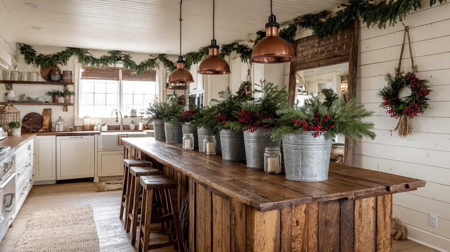 This metropolitan approach celebrates the honest materials and architectural elements found in converted urban spaces while adding warmth necessary for comfortable family cooking. The contrast between industrial elements and seasonal softness creates dynamic visual interest while maintaining the authentic character that draws people to urban living. This style works perfectly in loft kitchens or contemporary homes where exposed structural elements provide interesting design opportunities. The sophisticated presentation proves that holiday decorating can be adapted to any architectural style while maintaining both functionality and aesthetic appeal.