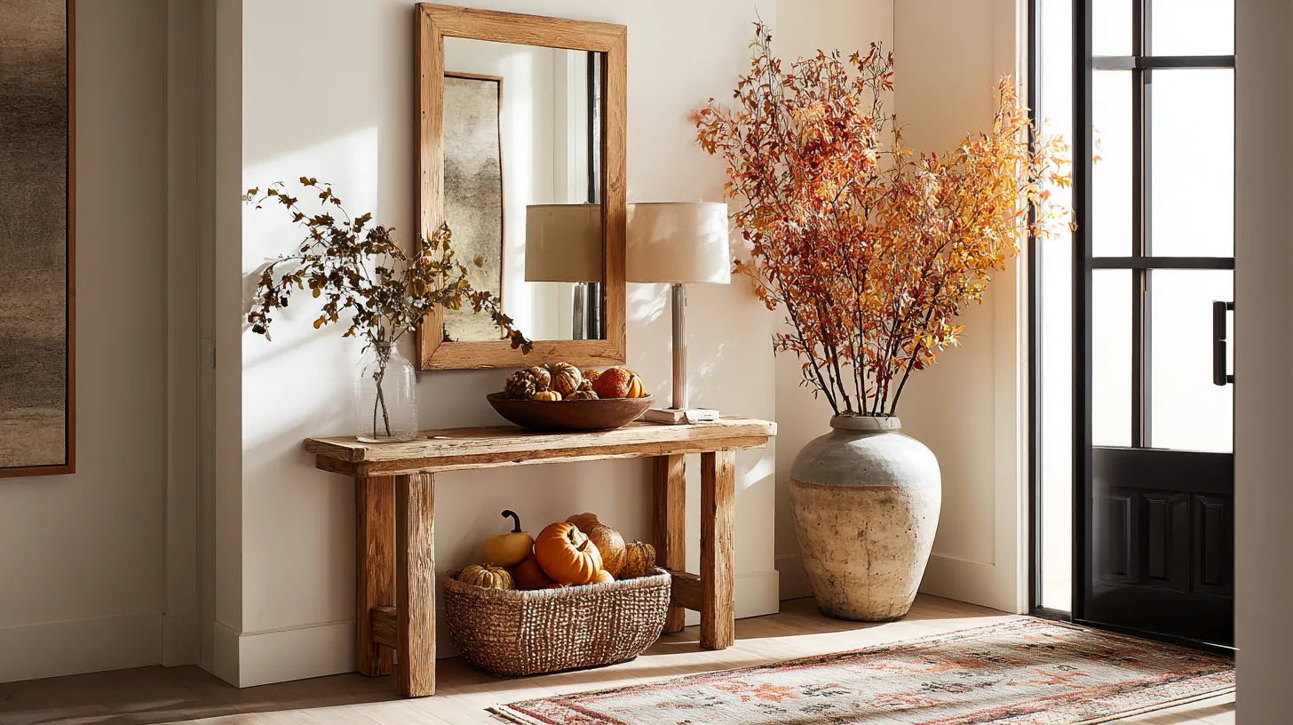 Your entryway sets the emotional tone for your entire home, and seasonal styling creates a welcoming atmosphere that reduces stress from the moment you walk through the door. A well-organized entrance eliminates daily frustration while providing beautiful focal points that lift your spirits after challenging days. The natural elements create grounding connections that promote mental clarity and calm, while the thoughtful arrangement demonstrates your attention to creating a nurturing home environment. This investment in your entry space pays dividends in daily mood enhancement and guest impressions.