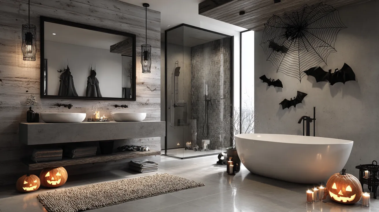 Minimalist design principles allow Halloween elements to make a bold statement without overwhelming your space. Geometric shapes and clean lines create visual balance while strategic color placement draws the eye to key focal points. This approach is perfect for homeowners who prefer subtle seasonal decorating – it maintains your bathroom’s serene atmosphere while adding just enough Halloween spirit. The uncluttered aesthetic ensures easy maintenance and creates a sense of spaciousness that makes daily routines more enjoyable.