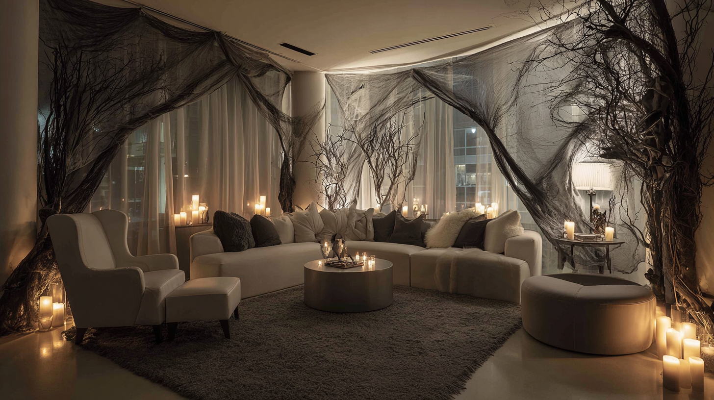 Transform your main living area into a sophisticated party venue that balances Halloween excitement with modern elegance. This refined approach ensures your party feels upscale and intentional rather than chaotic or overwhelming, making guests feel comfortable while still delivering that essential spooky thrill. The clean aesthetic allows your Halloween elements to shine as artistic focal points, creating visual impact without cluttering your space. Your home maintains its stylish personality while embracing seasonal fun, proving that Halloween parties can be both thrilling and sophisticated, appealing to guests who appreciate thoughtful design details.