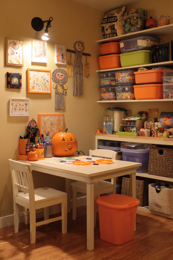 Encourage creativity and family bonding through dedicated crafting spaces that contain mess while providing all necessary supplies for successful Halloween projects. Activity stations demonstrate that Halloween can be about creation rather than just consumption, fostering artistic development and personal expression. These organized areas make crafting more appealing by eliminating setup time and ensuring supplies remain accessible when inspiration strikes. The dedicated space validates creative activities as important family pursuits worthy of permanent accommodation.